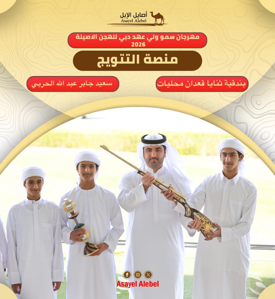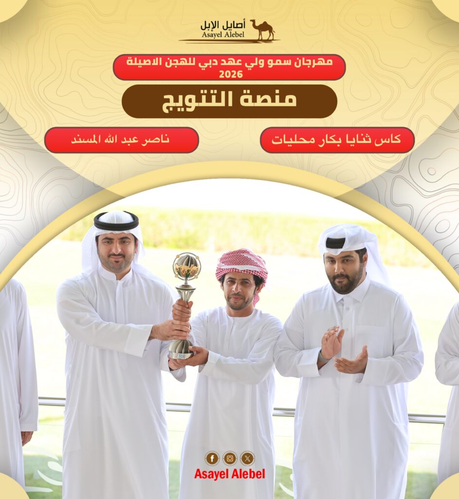 توّج الشيخ محمد بن مكتوم بن راشد آل مكتوم، رئيس مجلس إدارة نادي دبي لسباقات الهجن، أصحاب رموز أشواط سنّ الثنايا لهجن أبناء القبائل، ضمن منافسات سباق مهرجان سمو ولي عهد دبي للهجن 2026، الذي تتواصل فعالياته على أرضية ميدان المرموم.