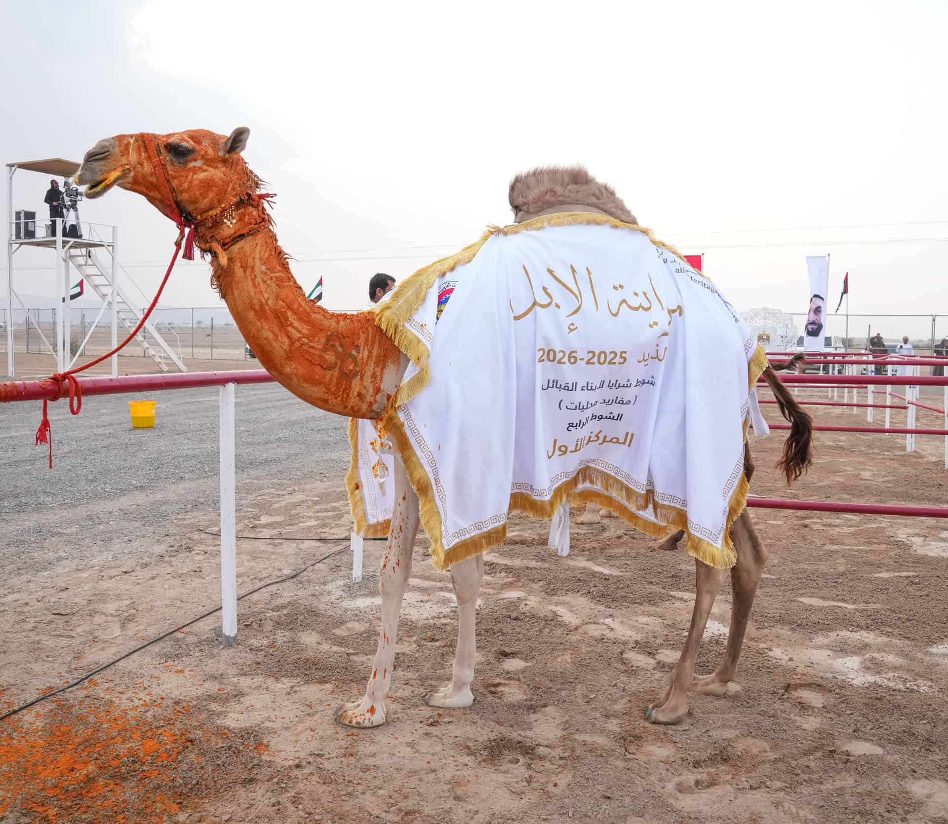 توج مهرجان صاحب السمو الشيخ محمد بن زايد آل نهيان لسباقات الهجن العربية الأصيلة ومزاينة الإبل “الذيد 2025 – 2026″، مساء اليوم، الفائزين بمزاينة الإبل لسن المفاريد (المحليات والمهجنات الأصايل)، ضمن 4 أشواط ضمن لها 40 جائزة، وذلك في منصة مزاينة الإبل في ميدان الذيد بإمارة الشارقة.