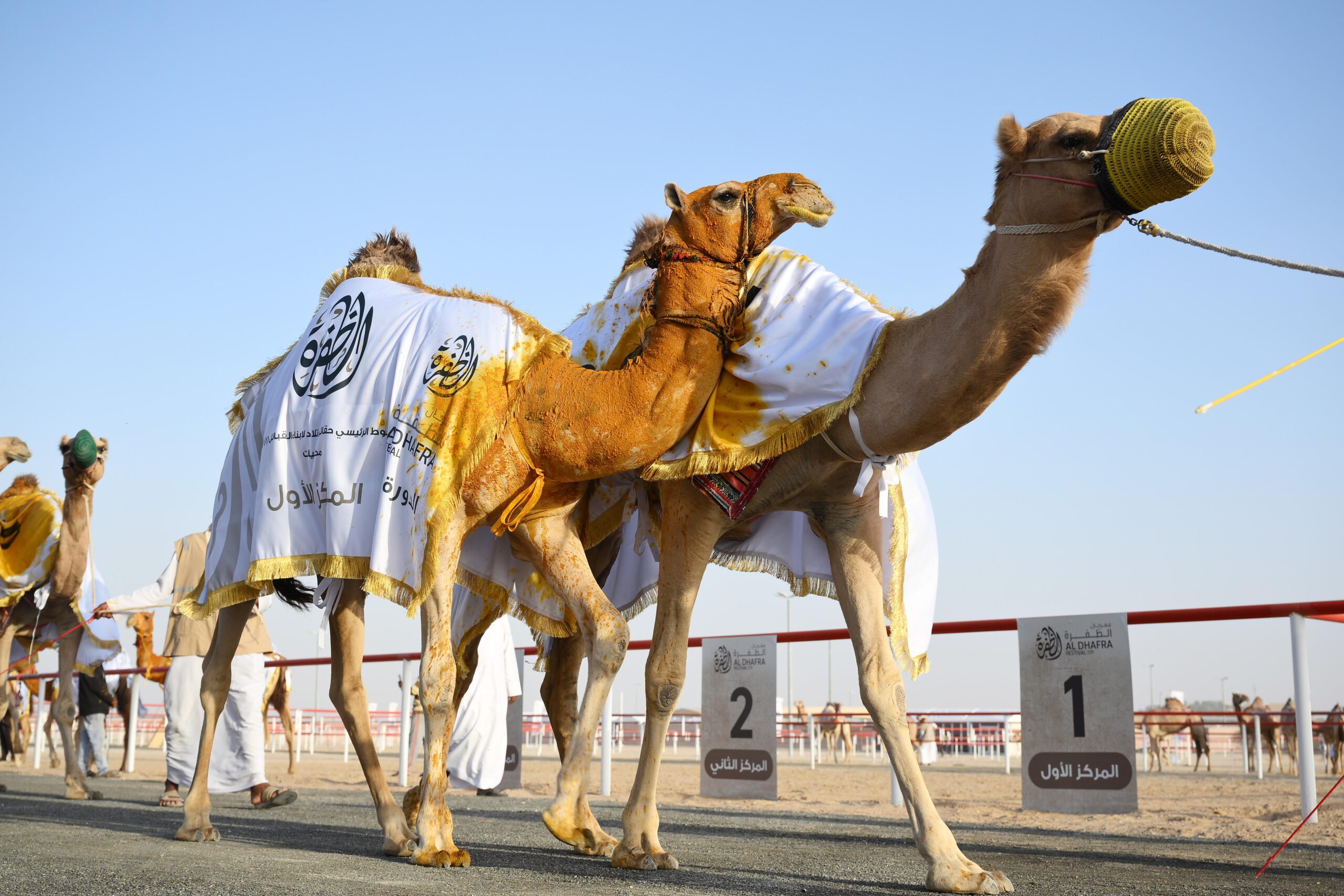 وتوج سعادة خليفة سهيل المزروعي ضيف شرف المزاينة، وسعادة عبيد خلفان المزروعي المدير التنفيذي لقطاع المهرجانات والفعاليات في هيئة أبوظبي للتراث، الفائزين في المنافسات، وسط حضور واسع من مُلاك الإبل وعشاق المزاينات التراثية وزوار المزاينة.