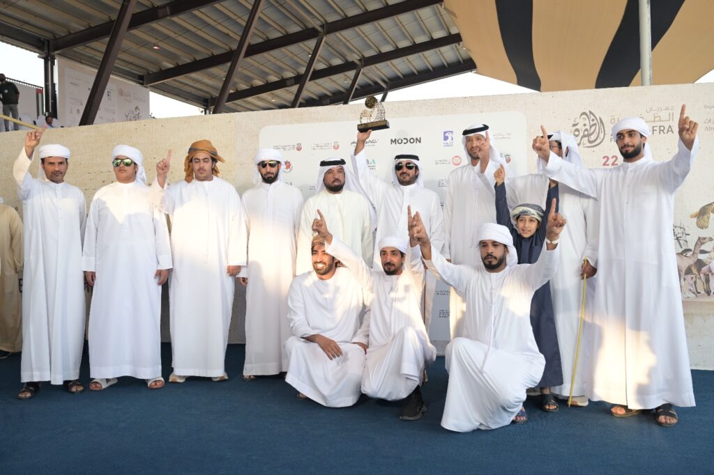 تتويج الفائزين بأشواط اللقايا في مزاينة الإبل بمهرجان الظفرة الختامي